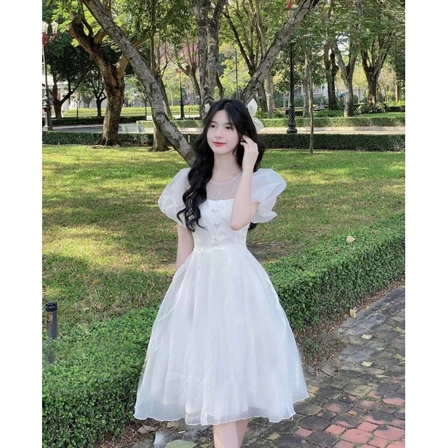 Để hóa thân thành một quý cô kiêu kỳ trong các buổi tiệc tối hay sự kiện quan trọng, bạn hãy kết hợp chiếc đầm này cùng một đôi giày cao gót mũi nhọn màu nude hoặc bạc. Thêm vào đó là một chiếc ví cầm tay (clutch) đính đá lấp lánh và một vài món trang sức tối giản như dây chuyền mảnh, hoa tai ngọc trai. Kiểu tóc búi cao hoặc uốn xoăn lơi sẽ hoàn thiện phong cách tiểu thư, giúp bạn trở nên sang trọng và thu hút mọi ánh nhìn.